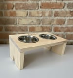Comedero INCLINADO hecho a mano en madera natural de pino, tratado con barniz hidrófugo que aporta resistencia a la humedad.